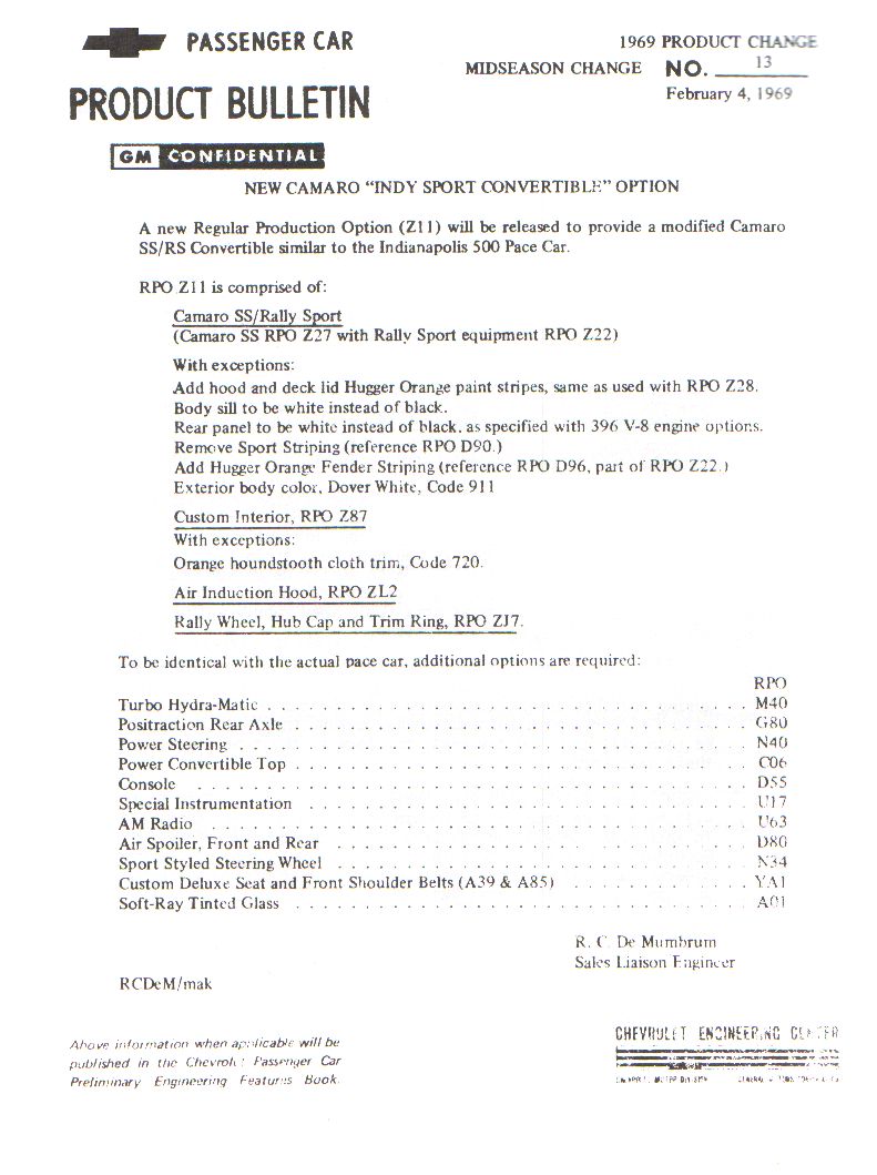 same price as the Z11 option. Door decals were not included with either Z10 or Z11 cars.