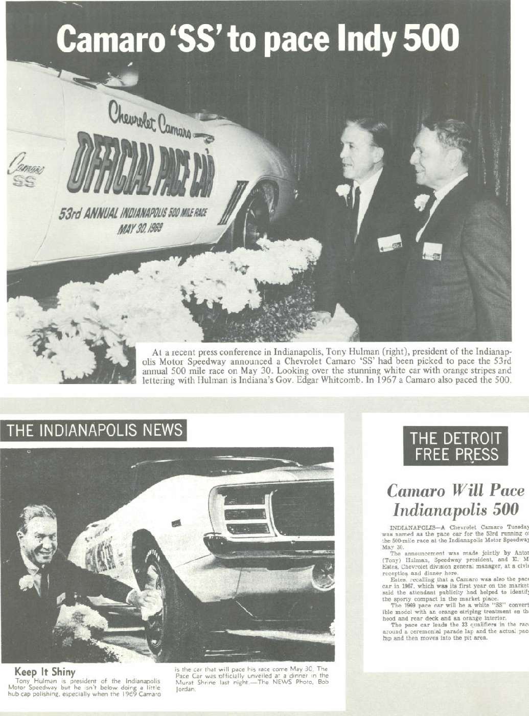 Official Pace Car for the 1969 running of the Indianapolis 500 and as the