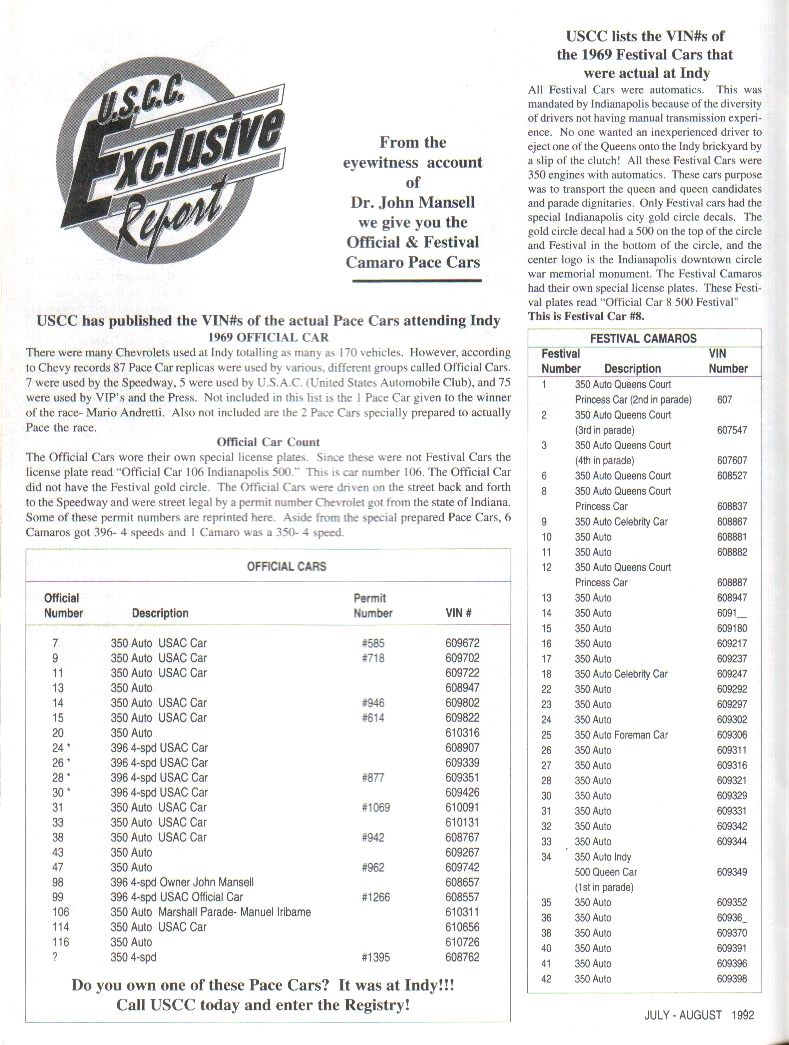 referred to as ‘pace car coupes’, neither the Indy 500 race nor the