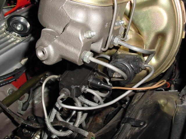 The inlet port side of the distribution block, with the terminal connection for the differential pressure switch. |