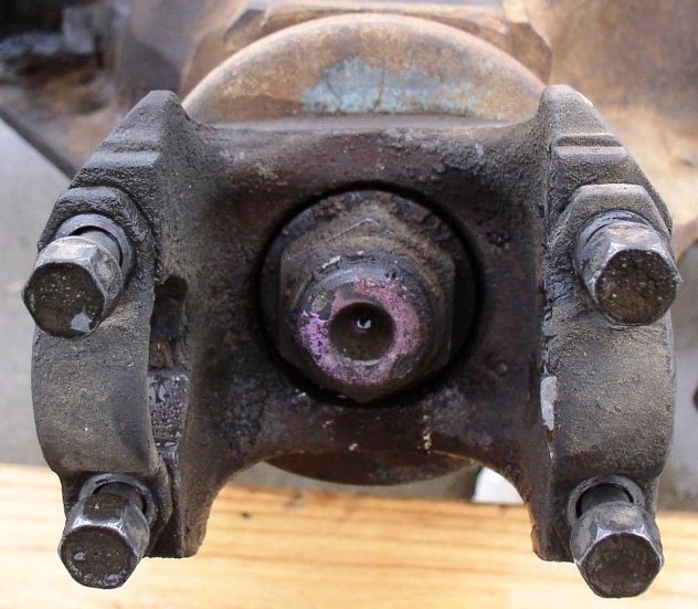 the yoke with u-bolts, washers and nuts while the 1330 u-joints were attached with straps and bolts.