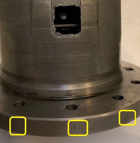 is usually stamped on the outside edge of the ring gear flange of the case. The format is month, day, and
