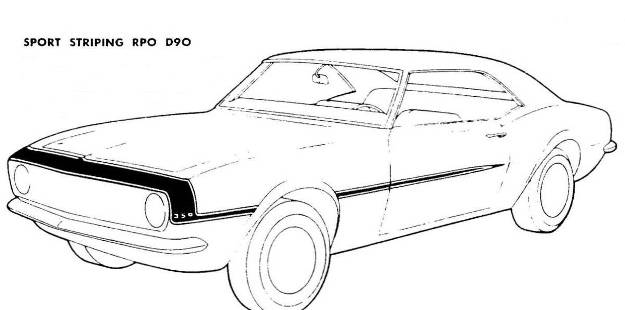 The D90 stripe (aka sport striping, shown above), used on the January and later 68 SS cars, became available in January of 1968 as an option on all 1968 non-Z28 models.