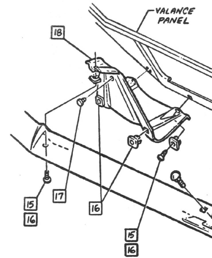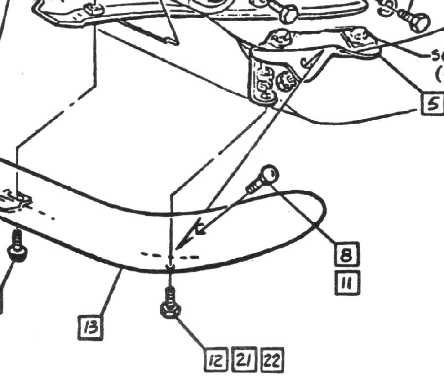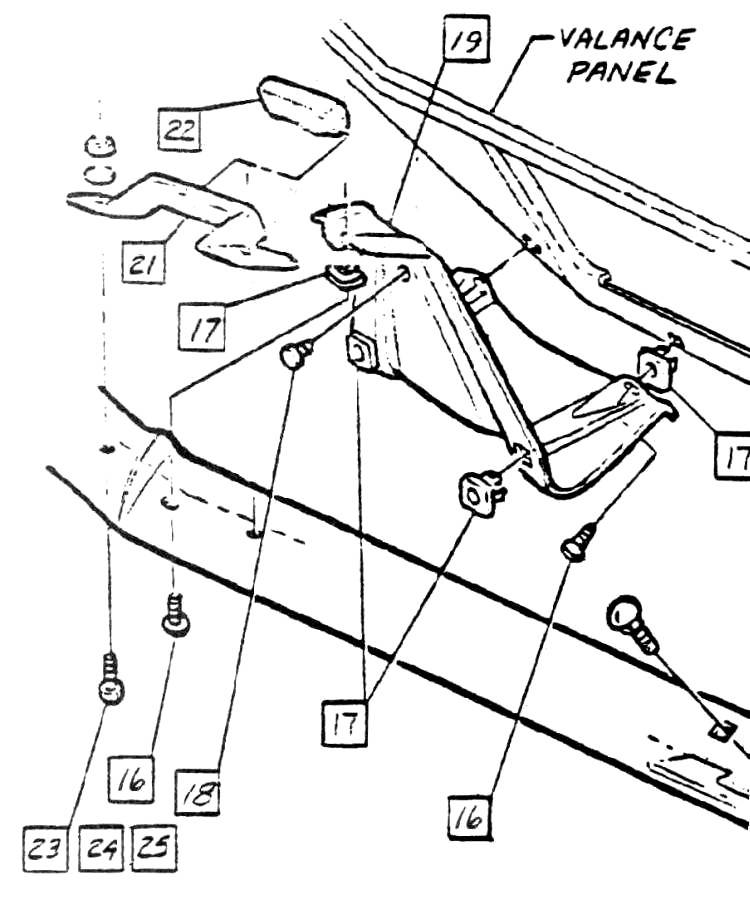 Figures 2a and 2b show the end of the front bumper for each year. The bumper mounting brackets are different for the two years. The 1967 bracket extends down to the lower part of the bumper, attaching with a bolt (#12) to a mounting hole in that location. The 1968 bracket is attached to the bumper only with the top-side bolt (#20) at the end and the bottom hole in the bumper was removed. The #20 bolt system was redesigned from 1967 and changed to use rubber cushions.