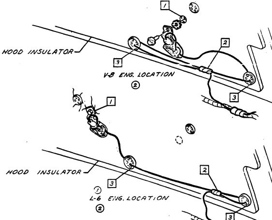 1967 underhood lamp, V8 location.