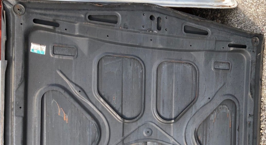 in 1969, stiffening pyramids were added near the front edge. The other hood structures received this modification in the same timeframe. There did not seem to be a part number change for the