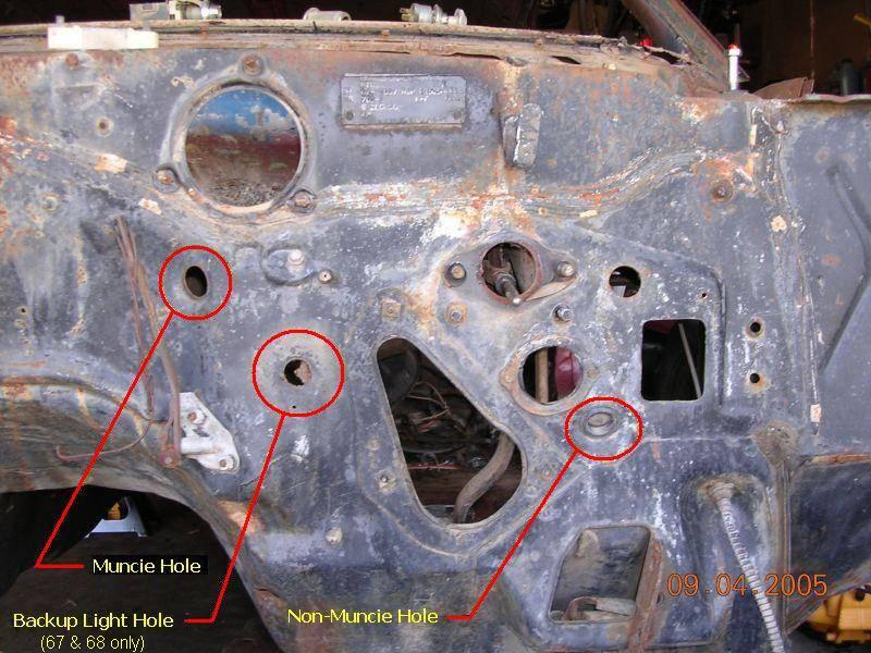 The speedometer cable for Muncie-equipped cars exits the firewall on the