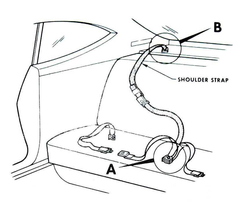 For 1967-69 convertibles, the shoulder buckle belt mounted to one of the