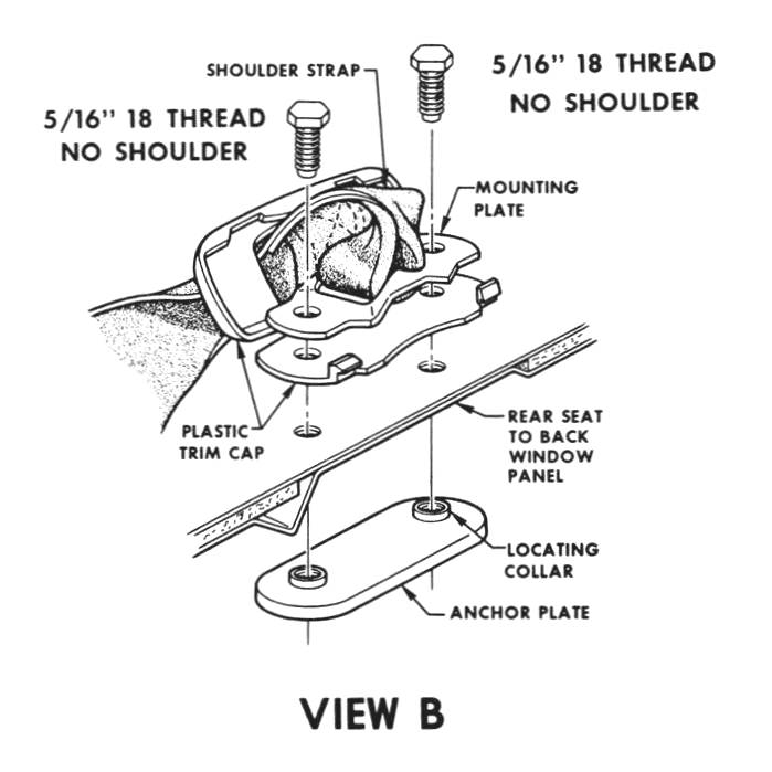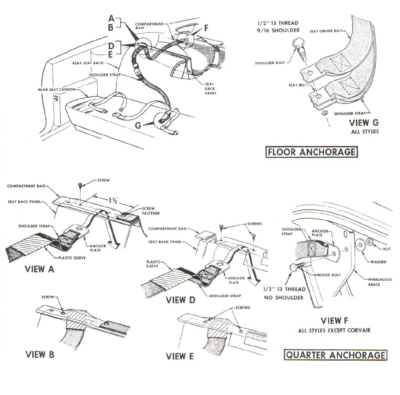 | 68-69 Coupe Rear Shoulder Belt | Coupe Rear Shoulder Belt Mounting Details |