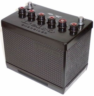 67-69 RPO T60, Heavy Duty Battery: The optional battery was Delco R69, a 70-Ahr battery with top posts and standard terminal positions (positive terminal inboard). This battery was a taller version (by 3/4 inch) of the R59, with the extra height allowing larger battery plates and hence more power. Unlike the standard batteries, it did not change to a side post configuration in late 69.